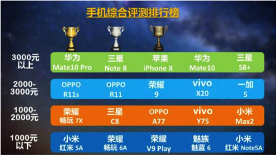 (图:荣耀畅玩7X位列1000-2000元手机综合评测第一名)