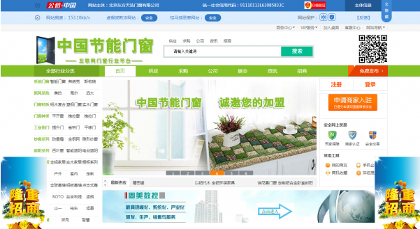 现如今,谁不谈及电商模式,谁就将落后,门窗行业也自然如此,如果不积极应对互联网+的冲击,随时都有可能面临着被淘汰的风险。中国节能门窗已经全面上面,现面向全国招商,欢迎各界朋友积极入驻,广告位有限,先到先得!
