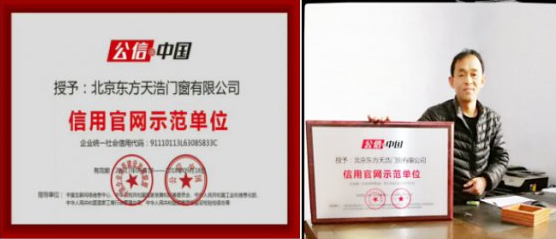 今年9月,及月华先生以北京东方天浩门窗有限公司为依托,向公信中国申请官方认证,现已成为公信中国首批信用官网示范单位,并统一由国家发改委、国家工商总局、国家质检总局、中国互联网络信息中心、工业和信息化部五大部委授予公信中国示范牌匾。公信中国作为企业公共信息统一查询平台,致力于企业信息挖掘的大数据平台,从工商基本信息到业务经营中累积的点滴都收录在数据库中,让企业信息更加透明,全方位了解企业信息。这样的便捷性不仅仅是体现在解决用户需求上,挖掘公开数据背后的价值更是对整个社会的正向发展也具有积极的意义。中国节能门窗作为北京东方天浩门窗有限公司的经济产物,做到了信息透明、数据安全可靠、企业放心、消费者放心,是值得信赖的专业平台。