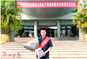 石龙镇杜润淡为挽救白血病患者捐献造血干细胞