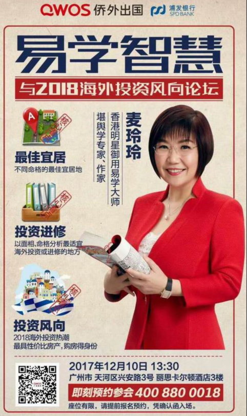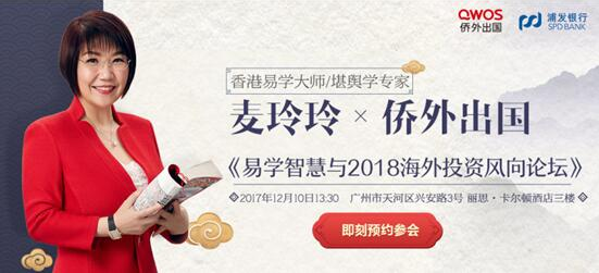 12月10日,广州侨外移民携手香港易学天后麦玲玲一起走进“2018全球投资风向论坛” ,超过22个国家的投资、财富、移民专家将与您面对面,共同探讨2018全球投资趋势与价值。