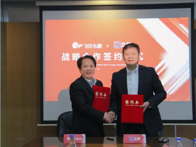 ▲东鹏控股董事长何新明与立邦中国总裁钟中林