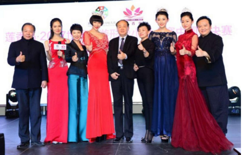 (左起:侨联基金会监事长林少迈先生/2016中国季军明溪/莲香岛创始人陆允娟女士/大赛全球代言人苏西/中国中文卫视台袁勇台长/著名演员文馨女士/2016中国冠军杜晨/大赛公益慈善大使刘小源/大赛创始人刘传江)