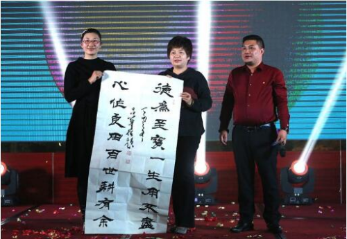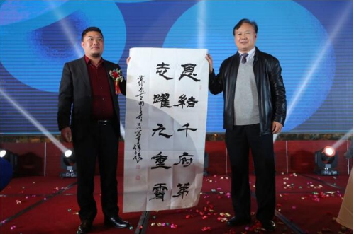 著名书法家吕华强向郭恩志董事长赠送书法作品。