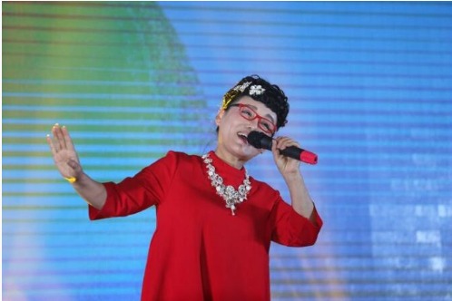 胡晓晴在湖南恩志私募股权基金管理公司东莞分公司开业庆典上演唱。 郭国权 摄