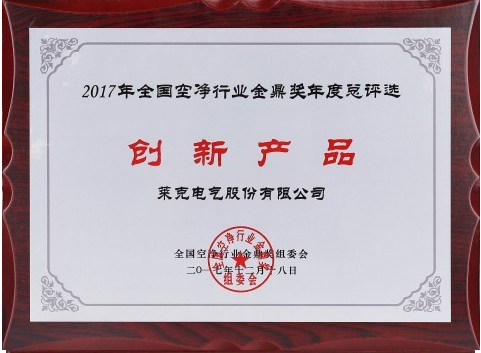 莱克空气净化器、碧云泉净水机荣获“2017全国空净、净水行业创新产品”奖