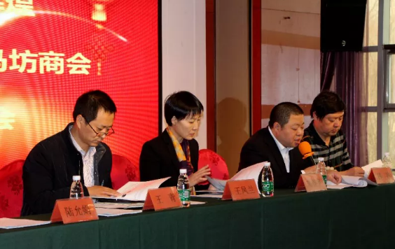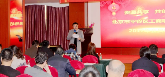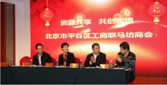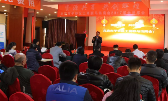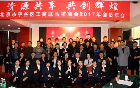 2017年12月28日,平谷区马坊商会“资源共享、共创辉煌”主题年会在天昊源度假村二层会议室举行,马坊开发区70余家会员企业代表参会,平谷区工商联党委副书记王凤兰和马坊区管理委员会王铁久主任、王青副主任分别致辞。