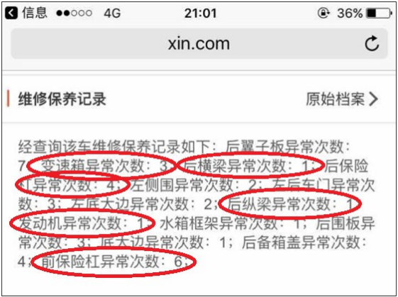 车主在优信重新注册后得到的优信方面给出的检测结果(图片由车主提供)