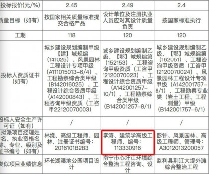 三、在本项目中,李涛担任项目设计负责人。经多方考证,李涛本人具备建筑学专业高工工程师,不具备风景园林专业教授级高工,为达到加分条件骗取中标,将原入川备案伪造资料用于该项目投标,存在严重的造假行为。