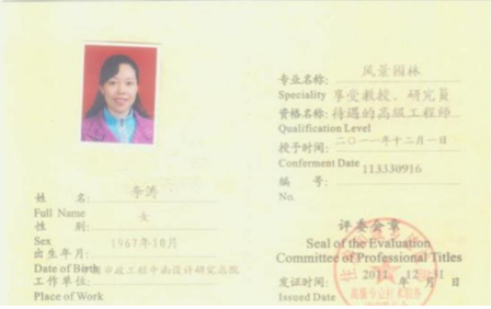 “这只是我收集的一部分证据,以上都是政府公示不会有半点虚假。这些都在政府官网上随时可以查到。我们都知道职业职称一个编号只能对应一个证书,在中南设计院的老家湖北省的工程中李涛的职称专业是建筑学高级工程师,但为什么到了四川这本职称证书就变成了风景园林教授级高级工程师?只有一种解释要么是在湖北做假,要么就在四川造假,至于追谁真谁假也许只有中南设计院和李涛本人最清楚吧?”