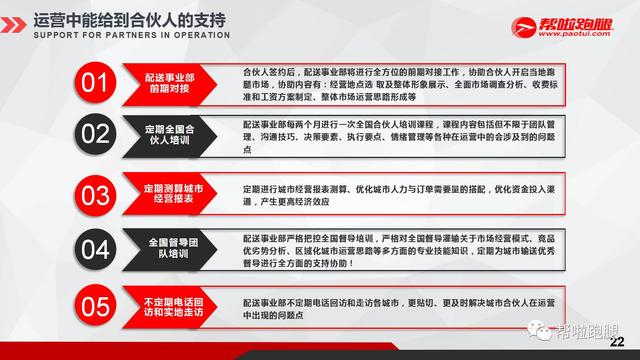 加盟帮啦跑腿,我们将全力支持合伙人,并且各地城市为当地做好更优质服务。