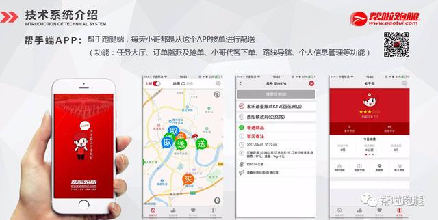 新版本APP上线:9.26号帮啦跑腿推出了新版本客户端、商家端及帮手端,同时商家端新系统已打通美团、饿了么等外卖平台的订单数据,新系统还增加了小时帮、帮啦到家等一些列全新的服务功能,同时针对帮手的调度系统也得到了升级,新系统数据处理及操作界面都更加快捷方便,带给用户一种全新的体验。