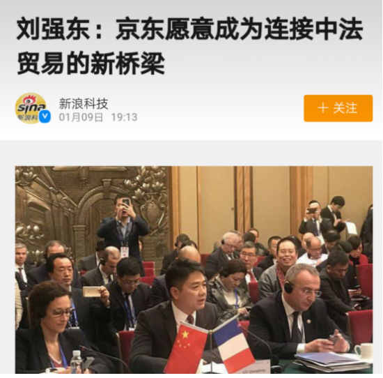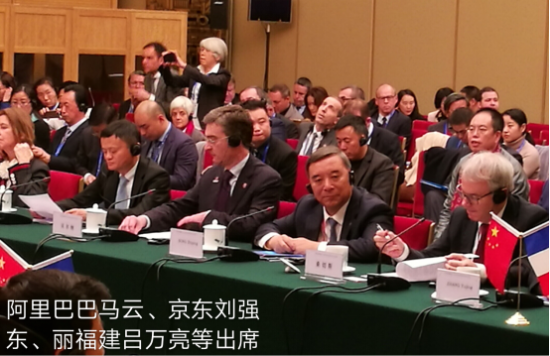 1月9日,法国总统马克龙访华期间,中法企业家委员会在人民大会堂正式成立并召开第一次会议。中法两国元首及其他中法政府代表、企业家委员会成员单位代表出席会议,阿里巴巴马云、京东刘强东、丽福健吕万亮等企业家受商务部邀出席。