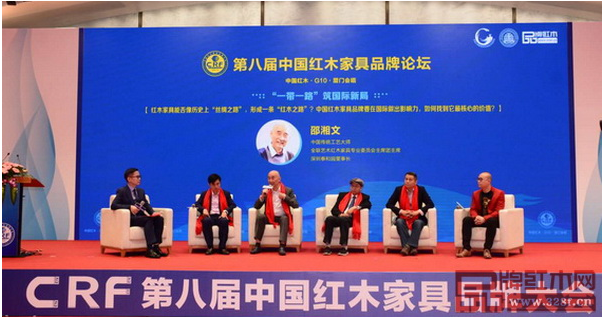 中国传统工艺大师、全联艺术红木家具专业委员会主席团主席、深圳泰和园董事长邵湘文(左三)受邀参加第八届中国红木家具品牌论坛
