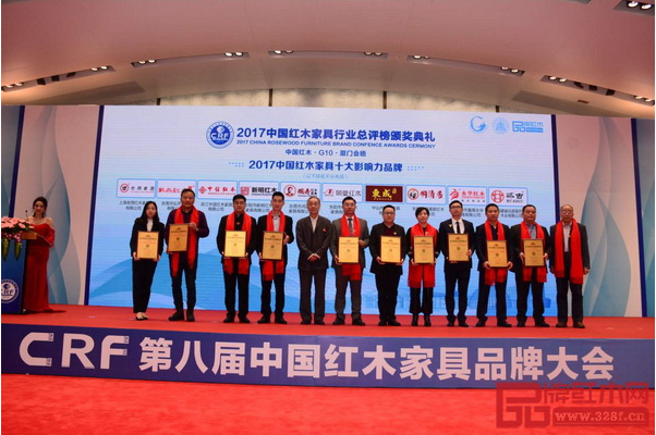戴为红木(右四)蝉联”中国红木家具行业十大影响力品牌“称号