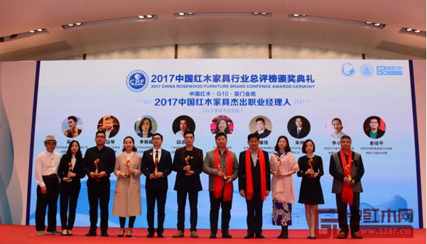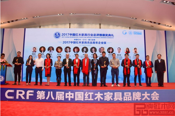 在颁奖典礼上,戴为红木被授予“中国红木家具十大影响力品牌”称号,总裁戴爱国荣获“2017年中国红木家具传承创新奖”和“2017年中国红木家具十大领军企业家”两项大奖;董事总经理翁肖尤被授予“2017年中国红木家具行业杰出青年企业家”称号;策划总监朱特斩获“2017年中国红木家具行业杰出职业经理人”,备受瞩目。