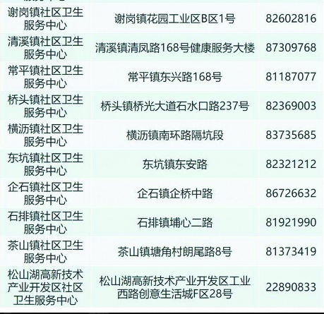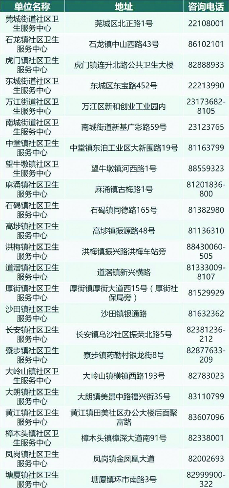 地点:东莞市各社区卫生服务中心