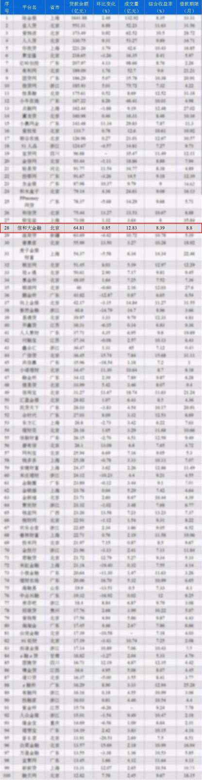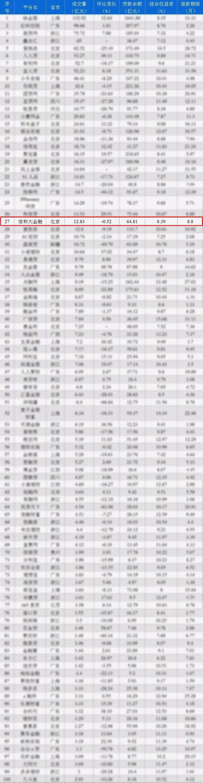 据网贷之家最新数据显示:2018年1月P2P网贷行业贷款余额为12493.9亿元,成交量为2081.99亿元。按照平台贷款余额和成交量排名,信和大金融分别排到28、27名。