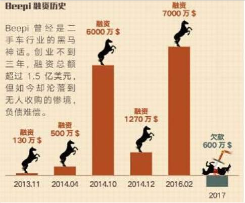 需要注意的是,瓜子二手车的老师,二手车电商C2C模式的鼻祖,美国二手车电商平台Beepi就是因为成本居高不下巨额欠债而倒闭,给同样走C2C模式的瓜子敲响了警钟。如果不是去年融资的及时到来,瓜子估计已经被判了死刑。