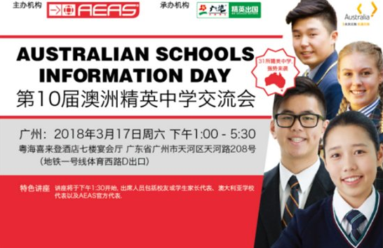 作为AEAS在华南地区首家授权机构,广之旅「精英出国」将携手澳洲AEAS官方于3月17日在广州独家举办第10届澳洲精英中学交流会。本次交流会由AEAS官方主办,届时将有31所澳洲顶级精英中学校长、招生官组团来广州,与各位学生及家长零距离接触。