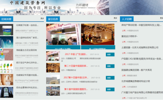 在中国建筑劳务网上,建筑劳务、建筑工程、建筑设计、建筑安装、劳务派遣、劳务输出、招投标信息等建筑行业企业商家是平台的主体,通过线上的集中展示,连晓清旨在为客户提供更方便快捷的服务。经过积极搭建,中国建筑劳务网(zgjzlww.cn)已经正式上线,目前平台举办年后大优惠活动,越早入驻,享受福利越多!
