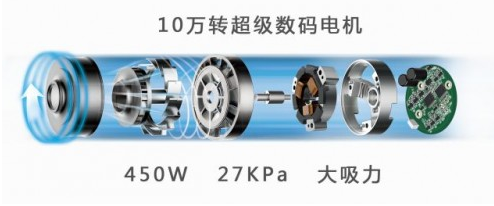 莱克魔洁M95 无线宠物吸尘器,是由莱克董事长兼CTO倪祖根亲自带领28位工程师潜心设计研发出来。魔洁M95 无线宠物吸尘器搭载了莱克最新研发成果第3代10万转超级无刷数码电机,最高功率450W,吸入功率225W,效率达到50%,电机真空度达到惊人的27Kpa,吸力相当于1500W交流吸尘器电机的吸力。
