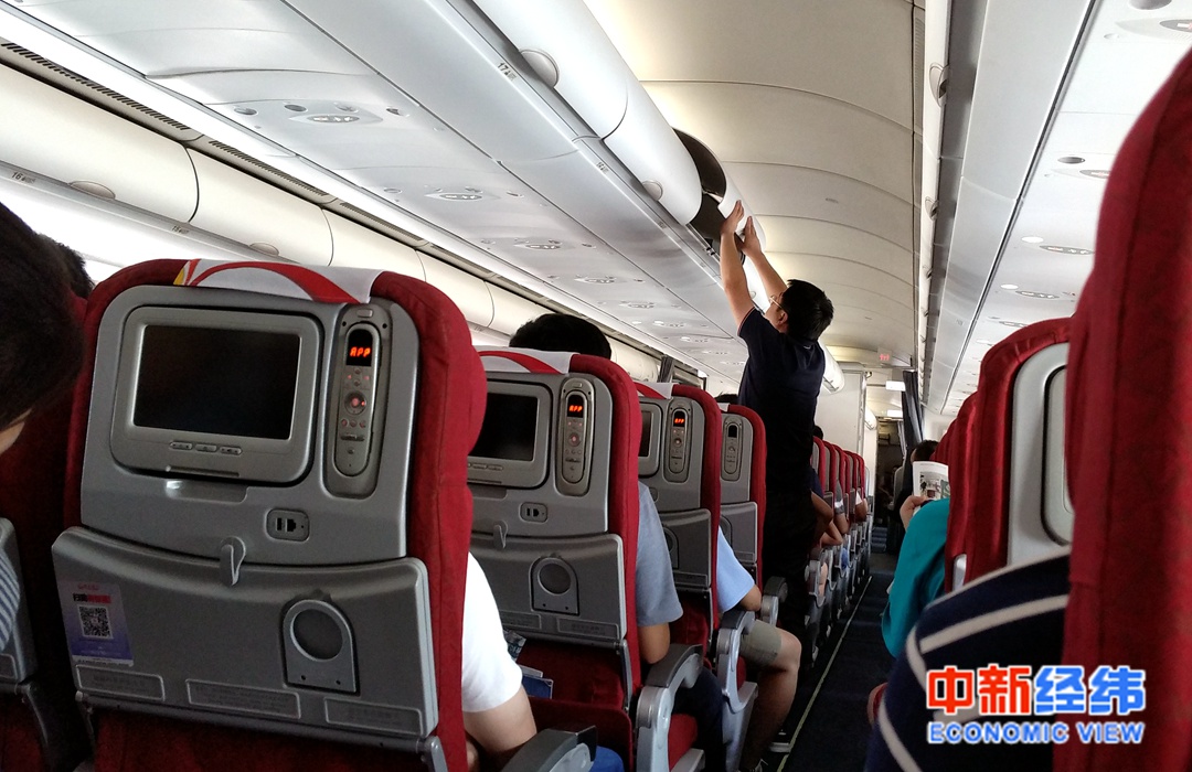 乘客在飞机上整理行李 中新经纬熊家丽 摄