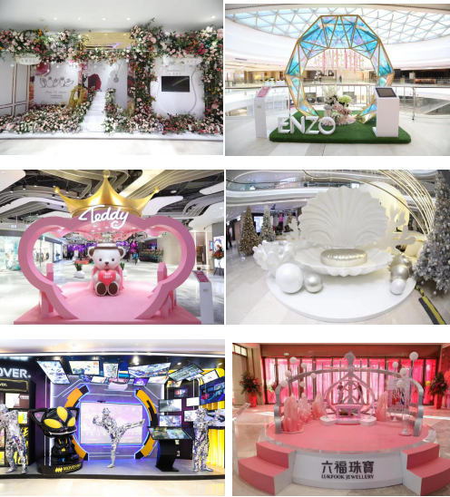 开业当天,1F的中庭美陈“人鱼之贝”、1F周六福“香港小姐金钻皇冠”、4F缘与美“玫瑰印记”、4F魔吻MOVER“珠宝动漫IP空间”、5F的ENZO“珠光秘境花园”等大型珠宝艺术装置,营造出浪漫的珠宝场景氛围,成为网红时尚打卡必到之地。