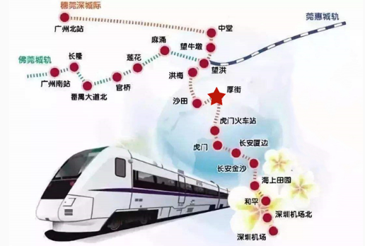 此外,2019上半年穗莞深城际线将全线通车,届时从厚街展馆30分钟即可直达深圳机场、10分钟到达广州新塘,同时经望洪(东莞西站)可转乘佛莞城际轨道交通、R1线,在虎门可交汇广深港高速铁路、R2线。城际线列车高峰每隔5分钟发出一趟,密度和市内地铁相当。