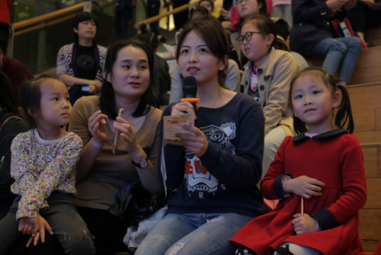 市规划国土委蔡子翎处长(中)与参与互动抽奖的小朋友合影