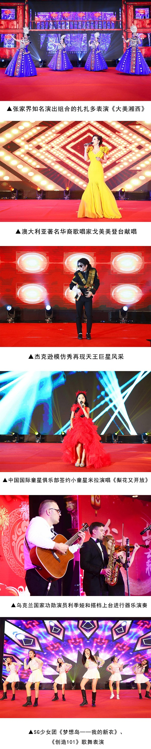 来自中国国际童星俱乐部倾心打造的国内第一支少女摇滚乐团SG少女团为本次盛拉开了帷幕。在晚宴上,不仅有国际选美大赛冠军/百变歌后戈美美、迈克·杰克逊亚洲大赛冠军光辉、国内首支少女摇滚演出乐团Sg组合等演艺界大咖登台助兴,还进行了精彩的具有地方特色的文艺演出和激动人心的抽奖活动。丰厚的奖品让大家惊喜不断,欢呼雀跃,年会现场写满了温情,处处洋溢着节日般的欢乐,与会人士畅所欲言,大家频频举杯、互致祝福,共同开创商会更加美好的明天!