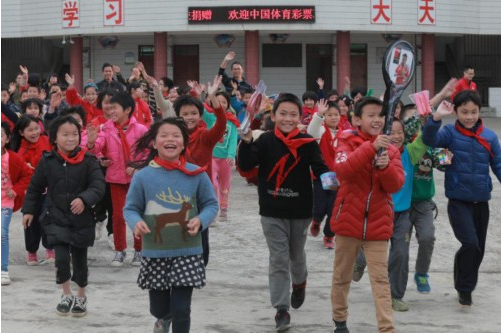 2019年1月,由中国体育彩票和广东美宜佳便利店有限公司的公益代表组成的“中国体育彩票&美宜佳公益小分队”,来到广东省郁南县,为那里的学生们送去了棉衣、书本、玩具、体育用品等爱心物资,为孩子送去关爱。