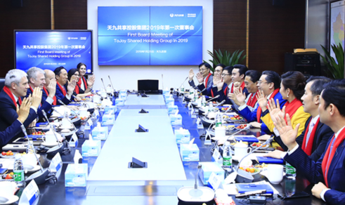 2019年1月27日,在鸟巢旁的国家会议中心,天九共享集团迎来了第28个年度盛会,哥斯达黎加前总统何塞·玛丽亚·菲格雷斯、塞尔维亚前总统塔迪奇和比利时前首相莱特姆三位前国外政要正式宣誓就职天九共享。天九共享集团董事局主席卢俊卿现场授予新晋董事局成员白玉印章。而早在几天前的1月25日,在天九共享位于北京仰山公园现代气派的新总部大楼里,三位前政要正式签约加盟天九共享,并出席了天九共享控股集团2019年第一次董事会。