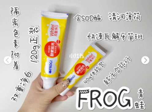 爱旅行爱生活的小霜兒也表示:“青蛙酵素牙膏还是女神baby代言的~它里面成分都是一些果萃酵素,又天然又温和,还能更好地分解牙菌斑去除牙渍,有效提高33%的净白度,比普通的牙膏清洁力更强哦~”