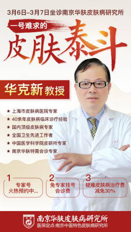 为了更好的帮助南京疑难皮肤病患者早日摆脱顽疾,南京华肤皮肤病医院特邀上海皮肤病医院华克新教授出席2019年3月6日-7日 “京沪宁皮肤病名医联合会诊”活动。