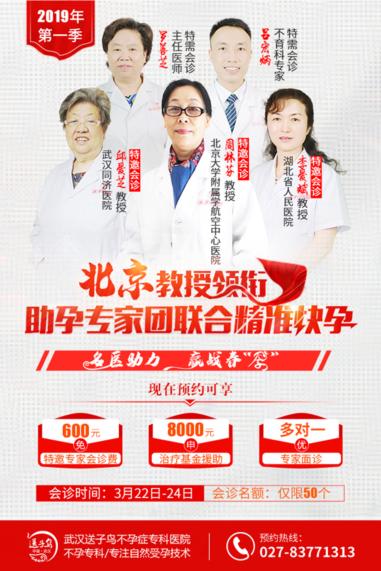 北京大学附属航空中心医院:周林芬教授、武汉同济医院:邱爱芝教授、湖北省人民医院:李爱斌教授,与送子鸟不孕不育医院助孕专家强强联手会诊,共同解答不孕不育难题。