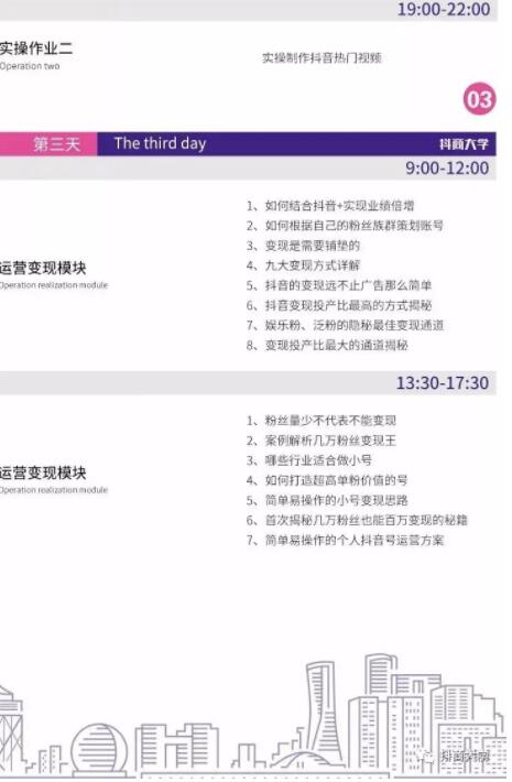 当然,周总魄力十足地分享了更多的精彩内容,这里就不一一举出了。好,开始划重点。《抖商大学2019年计划》周总正式公布。另,我们也公布了抖商大学4月课程计划,即3天2夜实战班课程体系。