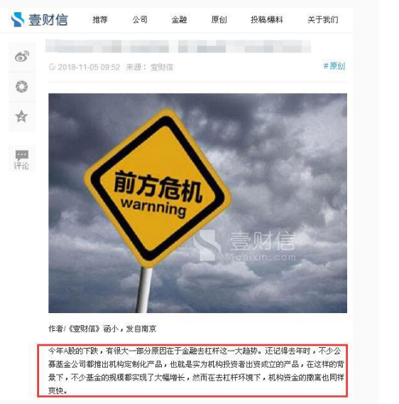 随着自媒体行业风口的日渐衰落,各平台都在谋求转型,希望能另辟蹊径从而顺利度过行业寒冬。2018年下半年一家名为《壹财信》的网站以报道上市公司、基金公司以及IPO公司见长,其言辞犀利、报道连续性较强,在财经界迅速获得极高关注度。