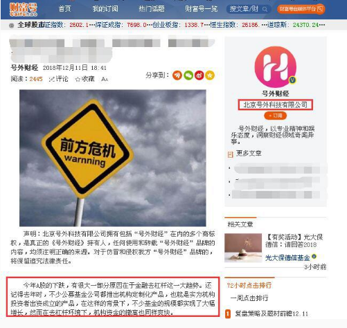 随着自媒体行业风口的日渐衰落,各平台都在谋求转型,希望能另辟蹊径从而顺利度过行业寒冬。2018年下半年一家名为《壹财信》的网站以报道上市公司、基金公司以及IPO公司见长,其言辞犀利、报道连续性较强,在财经界迅速获得极高关注度。