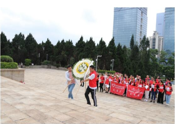 祭扫活动正式开始,先由深圳慈善会·德贝美爱牙基金代表向英烈纪念碑敬献花圈。