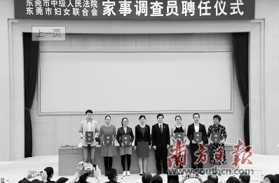 2017年底,东莞中院和东莞市妇联印发《关于建立家事调查员制度的意见》,正式在全市建立家事调查员制度。2018年3月13日,东莞市首批84名家事调查员正式受聘。东莞第三法院诉调中心主任、民三庭负责人郑水强说,家事调查的对象通常为事实问题,家事调查员来自基层社区,更熟悉社情民意,更具亲和力、机动性,能以更直接的方式感知当事人的情感,全面了解当事人的婚姻家庭情况,对纠纷事实的探知更清晰、准确、全面,有助于法院公正、高效审理案件。同时,家事调查员作为社会第三方力量助力家事纠纷化解,既能提高审判效率、节约司法资源,也能在案件处理过程中注入更多的人文关怀,修复受损的婚姻家庭关系,更好地满足群众多元解决纠纷的需求。