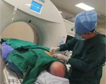 经CT检查发现肿瘤血运非常丰富易出血。所以复大的医生先给他做了一个穿刺活检,明确肿瘤的性质。