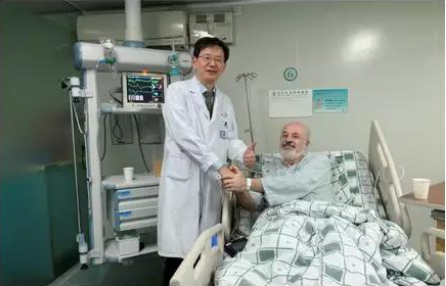 手术后当天,老人家就可以下地活动了。当牛立志教授去病房探望他的时候,回想起当时经历生死的一切,他高兴地握住牛教授的手,说:“Great!Great!”。