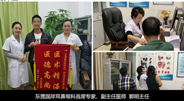 郭明:毕业于白求恩医科大学,毕业后曾在中国人民解放军总医院(北京301医院)、空军航空医学(北京解放军466医院)等三甲医院从事耳鼻咽喉头颈外科临床治疗工作。1999年被我国“耳鼻喉临床科研中心”选为研究员。从事耳鼻喉科临床工作近30年,现任东莞国岸医院耳鼻喉科特聘专家。具有丰富的临床工作经验,在国内耳鼻喉治疗领域享有较高声誉;先后在中国耳鼻喉资讯网、中国医师协会上率先提出应用超微创技术治疗鼻咽部慢性疾病的前瞻性理念,得到了业内专家的认可与好评。并多次荣获省级“先进工作者”称号,拥有丰富的一线临床诊疗实践经验,对国最新的内外耳鼻喉的诊疗技术运用娴熟。长期从事耳鼻喉疾病的临床、理论、科研、技术创新与教学工作,拥有丰富的一线临床诊疗实践经验,熟知国内外耳鼻喉领域的最新诊疗技术。