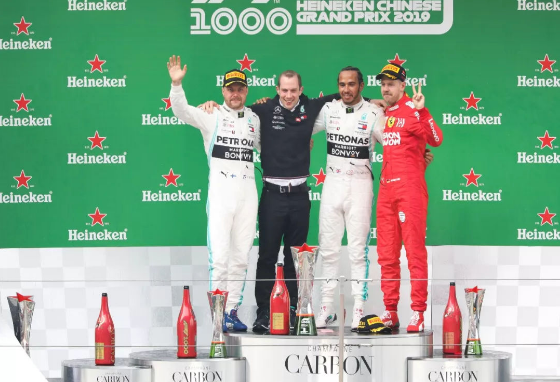 最终梅赛德斯车队的汉密尔顿和博塔斯获得冠亚军