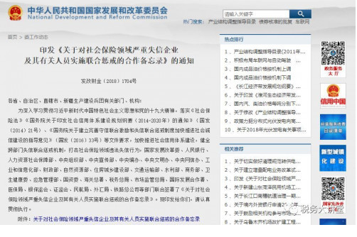 2018年11月22日,国家发改委公布了《关于对社会保险领域严重失信企业及其有关人员实施联合惩戒的合作备忘录》,要求国家各部委联合打击社会保险领域的违法失信行为,进一步加强对社保征收的执法力度。