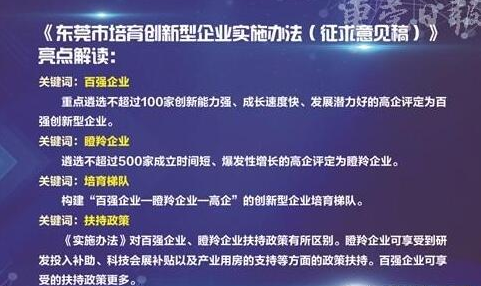 东莞针对实体经济已经推出“倍增计划”相关政策,通过遴选优质企业,给予成色十足的政策优惠,部分企业实现业绩倍增,本次针对高企大而不强的问题,东莞出台了培育创新型企业实施办法。