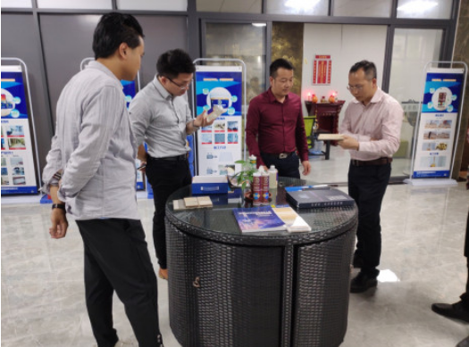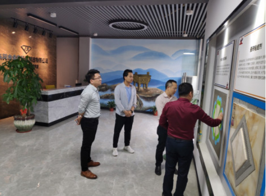 随后,在东莞创客邦负责人的带领下,黄景鹏委员及黄少鹏副局长来到东莞创客邦入驻企业——东莞市金兆节能有限公司。该公司是一家集研发生产销售为一体的现代化新型建筑材料公司,公司总部位于常平国际创新港,目前设有三个生产基地分布在东莞,梅州和清远。主要业务为:建筑材料开发、生产、销售,连锁销售管理,投资管理,金融、商业贸易等领域,是一家多元化发展的现代化公司。