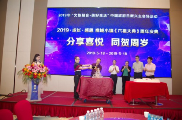 时针走到了2019年5月18日,《六祖大典》开演一年的时间。当天,户外实景演出上演地新兴禅域小镇高朋满坐,来自全国的文化界、艺术界、旅游界与媒体界的人士齐聚小镇,共同为实景演出一周年举行主题为“感恩.成长”的庆祝活动。