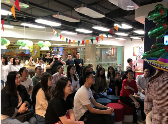 派对开始前,中心教学服务经理Sarah头戴墨西哥大草帽手持科罗娜,在学习中心的英语角为学员热情地介绍了墨西哥文化以及五月五日节的由来和习俗,还让学员们用学习到的相关英文词汇和表达进行交流。